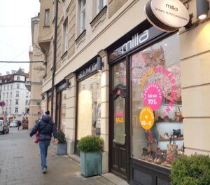 A relatively recent introduction to Waldtrudering’s high street, Convertini has a modern and pretty collection of clothing, shoes and accessories in vibrant and metallic colours. Prices are also competitive. Thank you Mr. Convertini and Sarah for supporting a local Trudering designer 🙂